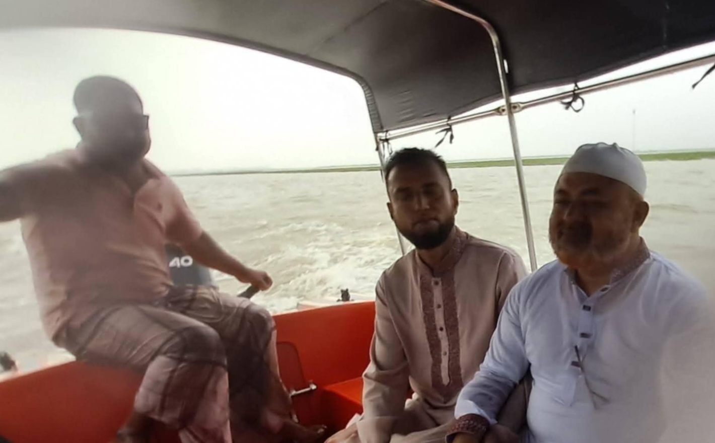 জামায়াতের এমপি পদপ্রার্থী বৃষ্টিতেও বসে নেই। কেওয়ারজোর গণসংযোগে যান স্পিডবোটে বসে।
