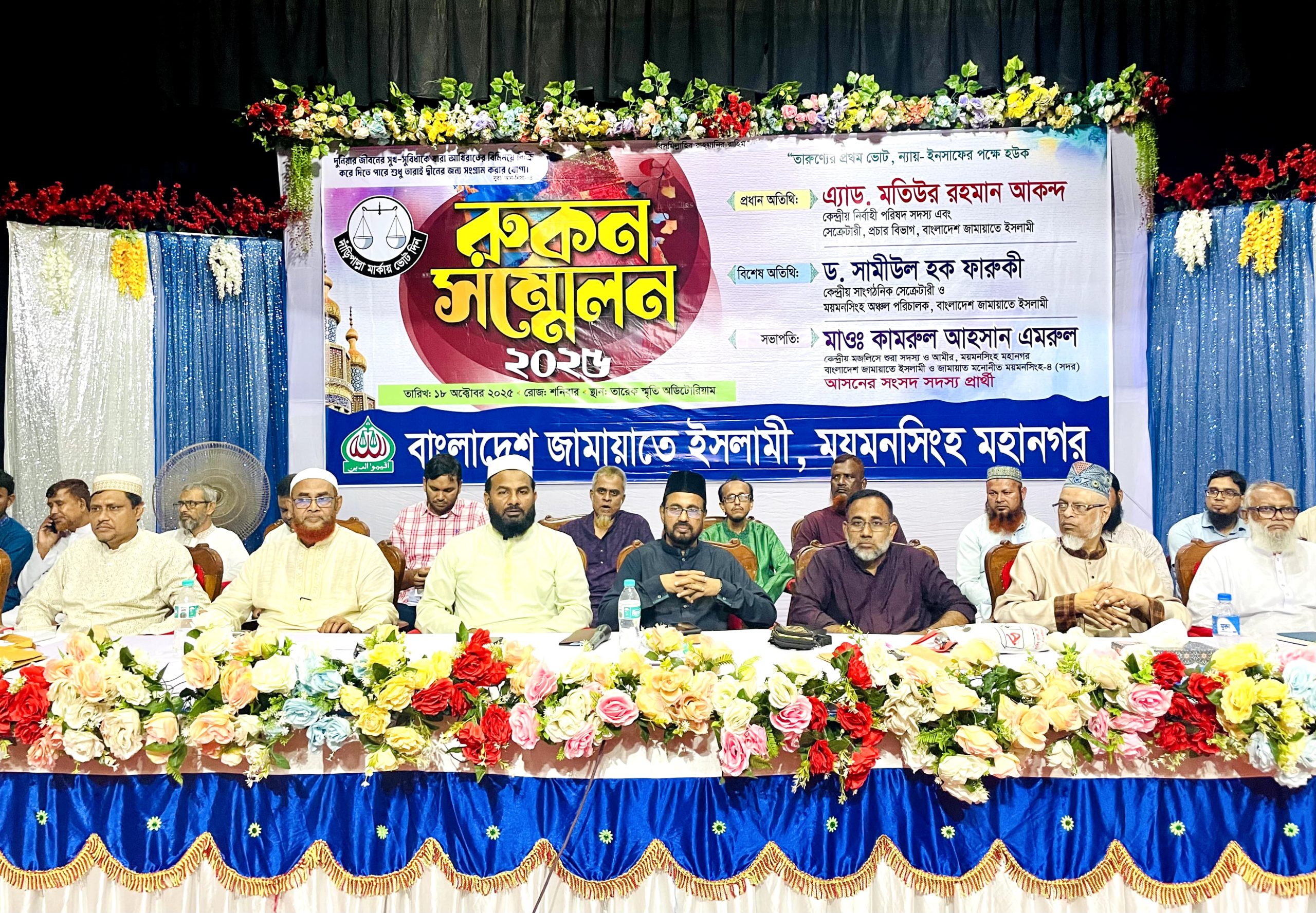 আজ ১৮ অক্টোব শনিবার সকাল ১০ ঘটিকায় ময়মনসিংহের টাউনহল প্রাঙ্গণে এড. তারেক স্মৃতি অডিটোরিয়ামে ময়মনসিংহ মহানগর এর রুকন সম্মেলন অনুষ্ঠিত হয়েছে।
